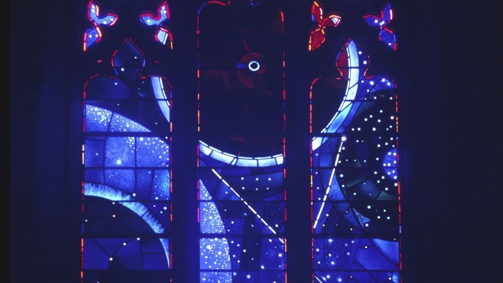 The cathedral’s Space Window contains a real moon rock collected during the Apollo 11 mission in 1969.