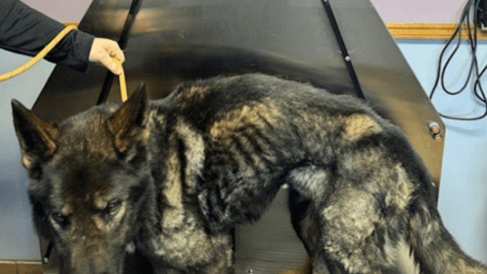 Animal control said that his former owner, 25-year-old Caitlyn Pelton, was charged with unnecessary cruelty to animal, care of dogs (failure to provide adequate food or water), and rabies vaccination required.
