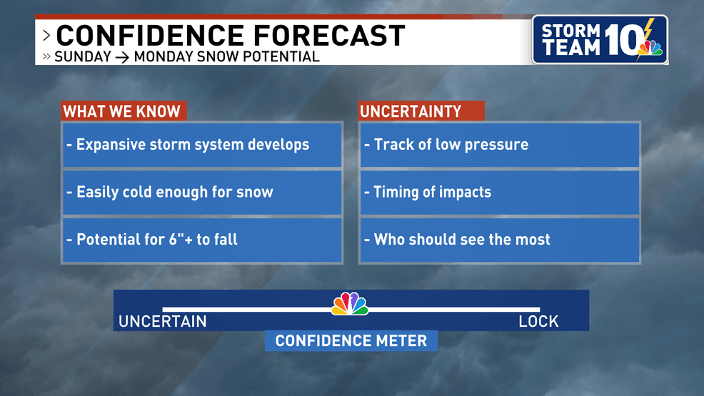 There will likely be at least a plowable snow across much of Southern New England late Sunday into Monday, but the exact snowfall forecast won't be known for a couple more days.