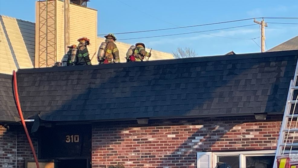 Firefighters battling flames on the roof of the building after a fire on Thursday, Jan. 15, 2026. (WJAR)