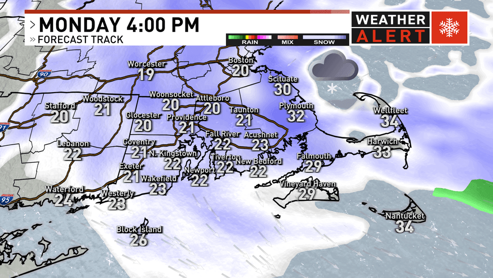 Snow could persist all the way into Monday evening, leading to additional snowfall accumulation.