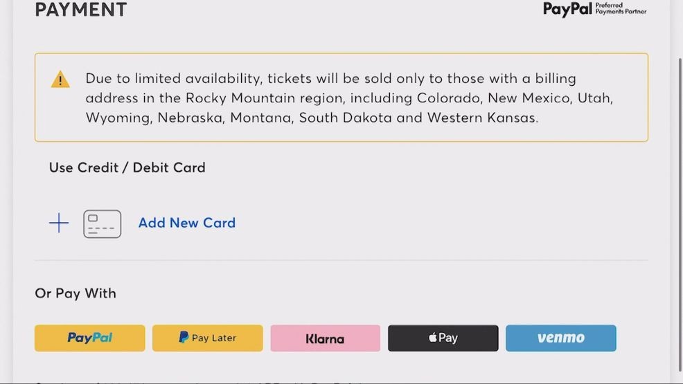 Fans will be met with a message on Ticketmaster, which says that due to limited availability, tickets will only be sold to those with an address in the Rocky Mountain area.