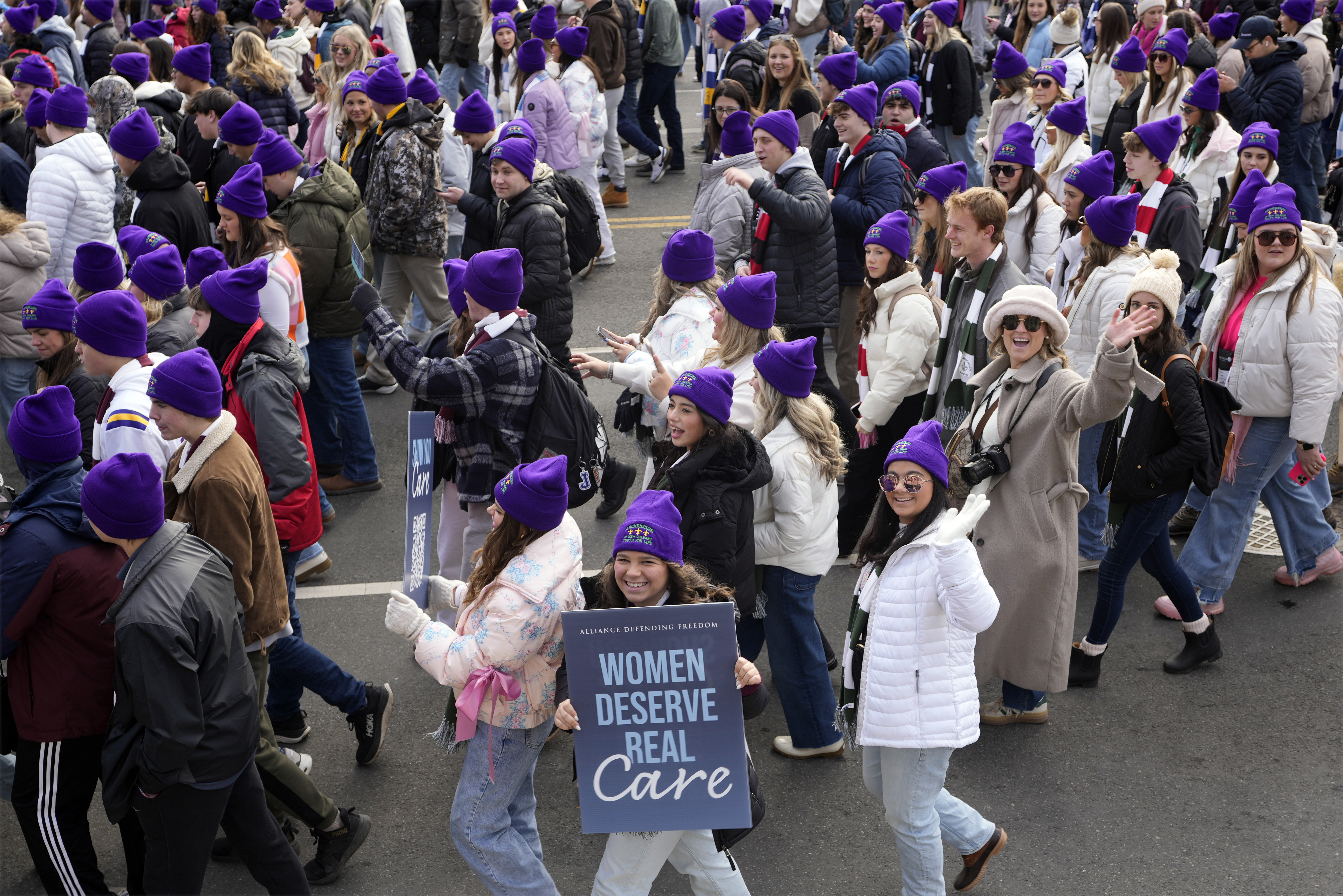 People participating in the annual March for Life, walk from the Washington Monument to the Supreme Court, Friday, Jan. 24, 2025, in Washington.(AP Photo/Ben Curtis)