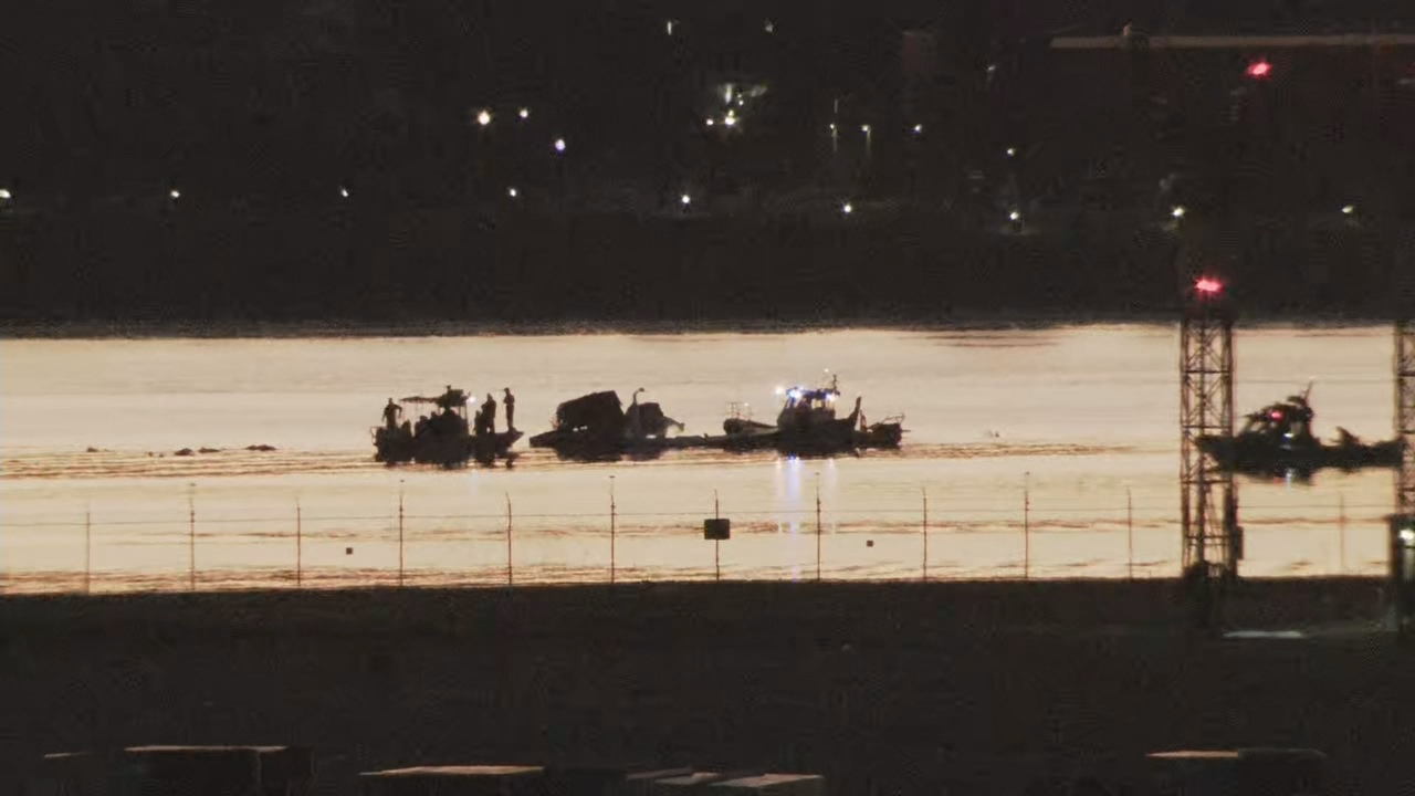 Search and rescue efforts are seen around a wreckage site in the Potomac River from Ronald Reagan Washington National Airport, early Thursday morning, Jan. 30, 2025, in Arlington, Va. (AP Photo/Mark Schiefelbein)SHARE