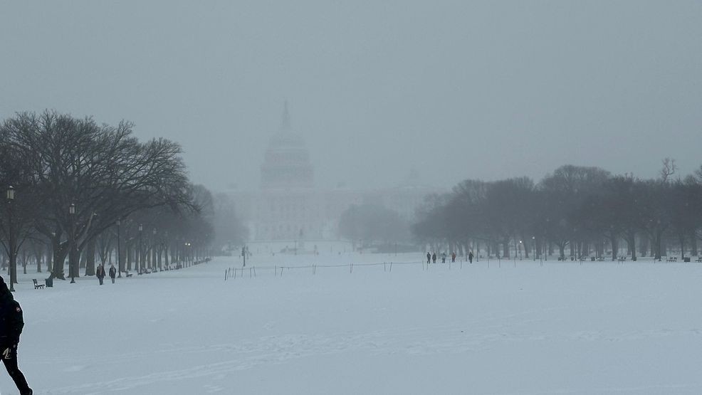 ARLINGTON, Va. (7News) — Snow is falling across the D.C., Maryland, and Virginia region as a powerful winter storm continues to move through the area on Sunday.