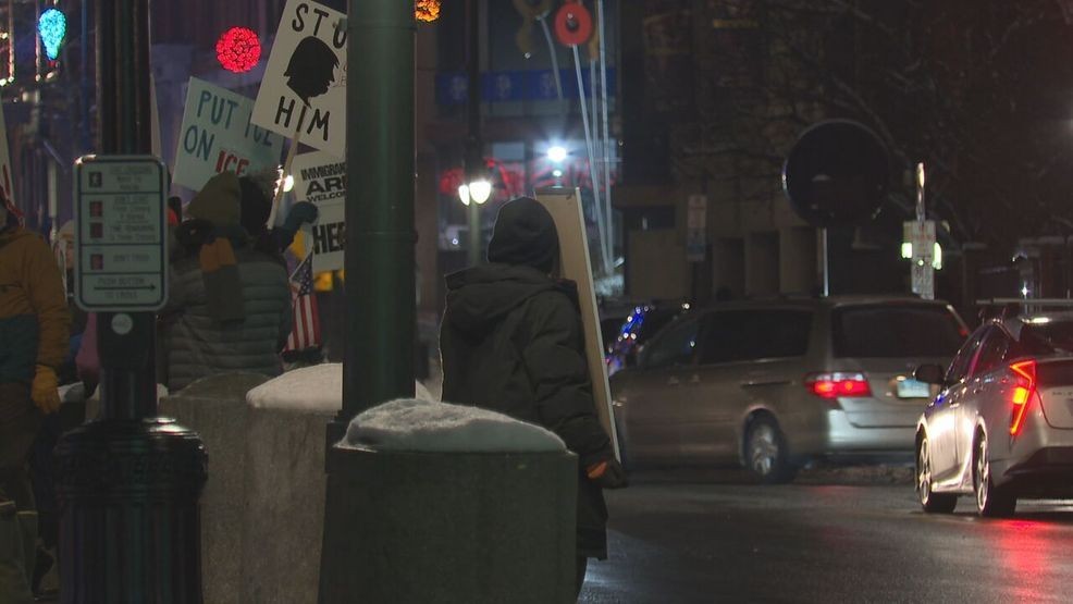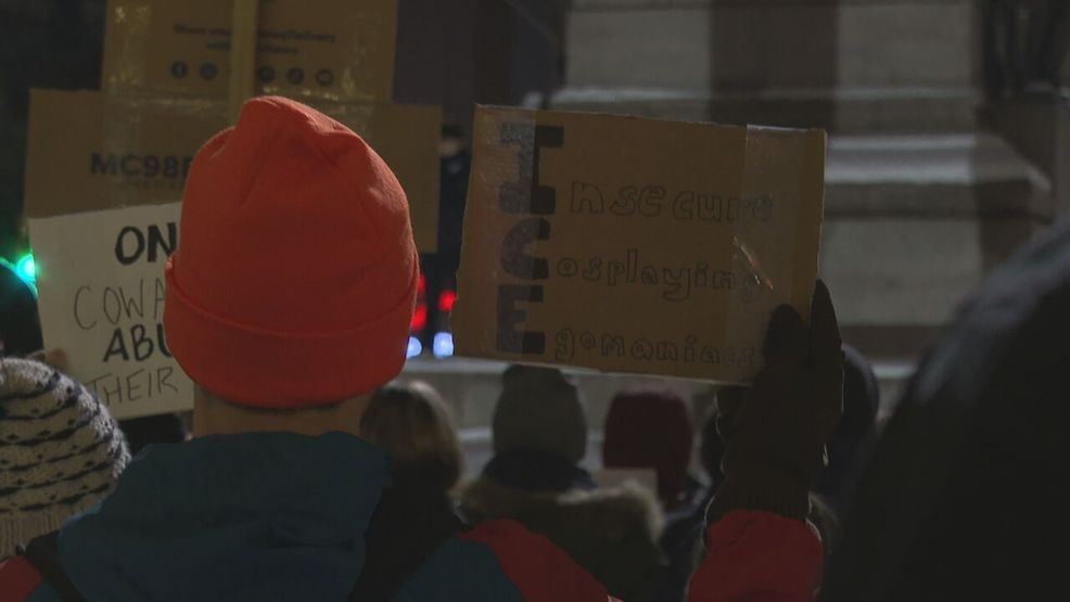 PORTLAND, Maine (WGME) – Protesters gathered in Portland’s Monument Square Sunday night to protest the Trump administration and its policies.