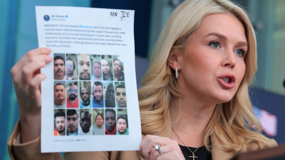 During the news briefing, Leavitt held up mugshots showing criminals ICE recently arrested in Minnesota. She also accused Gov. Tim Walz of encouraging his citizens to incite the harassment and illegal obstruction of law enforcement in the area.